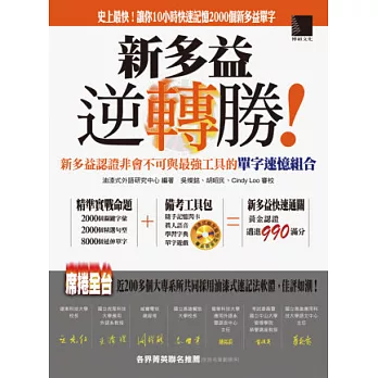 本書除了收錄2000個多益測驗中出現頻率最高的單字外,還特別精心整理了常考單字的大量同義字、反義字與相關詞性字彙,共有將近8000個單字,讓各位不但能更深入認識類似單字間的差異,並藉由單字間相互關連、聯想與拉抬下加強記憶,能更快速學會本書中所涵括的10000個單字。