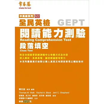 本系列書由英語教學專家 賴世雄教授主編,『百分之百鎖定考題趨勢,完全仿真,幫讀者培養臨場經驗,是讀者致勝的關鍵!』?雙色印刷?重點清楚?排版清晰?完全仿真