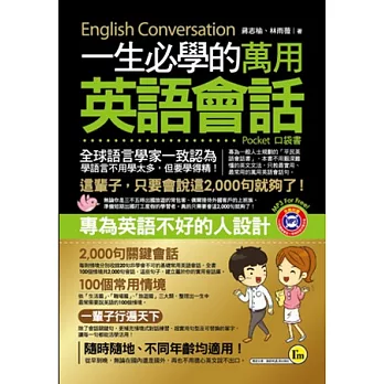 書本特別設計成輕巧方便攜帶的大小,讓你隨時隨地,想學就學,麻雀雖小,五臟俱全,每天用一點點時間,學習一生必學的萬用英語會話,打造超完美英文能力!