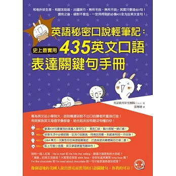 經典款式英語秘密口說輕筆記:史上最實用435英文口語表達關鍵句手冊 (1書 + 1MP3) 網友評鑑4顆星