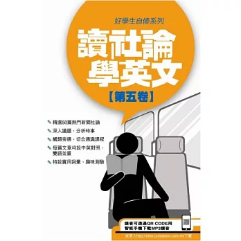 《讀社論學英文》系列所選之社評文章,均立論嚴謹,見解獨到,可作為現時通識課程參考之用。每篇文章附設中英對照,生字學習、實用詞彙、趣味測驗,讓讀者輕易提升英語閱讀及寫作能力。另外,可透過書本裡的QR CODE 用智能手機或登上eltre.unistation.com.hk下載MP3讀音,隨時輕鬆學習標準發音。