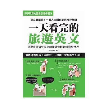 從開始規劃出國旅行開始,如何用英文訂飯店、如何用英文打電話確認機位、如何用英文與海關溝通、如何用英文安排當地行程…,這本書都會用圖解的方式,一步一步地告訴你!