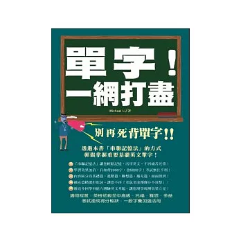 因此,要克服這個困擾,就需要一本好的單字書;一本好的單字書是要將所有單字重新排列組合,依照一定的規則將相關的單字都放在一起,透過這本《單字!一網打進》獨創的『串連記憶法』讓您輕鬆記憶、活用英文,不再痛苦死背。本書還附錄了多回大學學測英文考題,讓你立即感受學習成效!